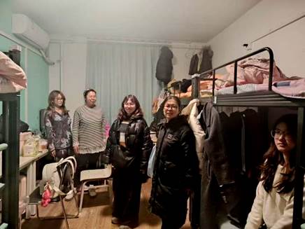 当晚,二位老师深入学生寝室走访慰问,与学生们亲切交流,详细询问住宿、饮食及异地适应情况。同时叮嘱大家严守安全规范、珍惜实训机会、主动钻研学习,并鼓励同学间互帮互助、协同进步,让同学们切实感受到学院的关怀与温暖。